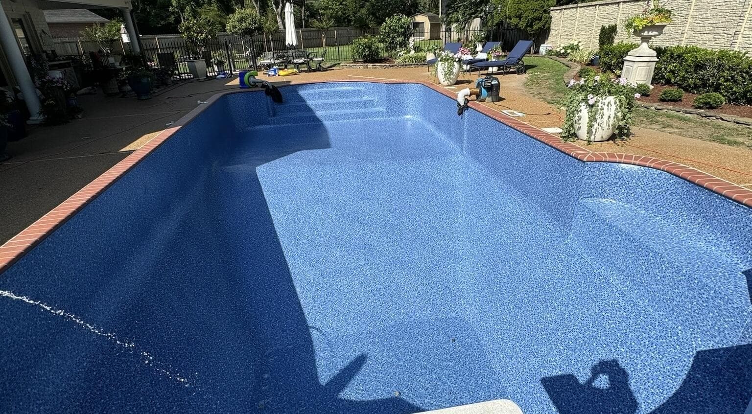 Professional vinyl liner replacement using premium patterns from Tara and Latham.